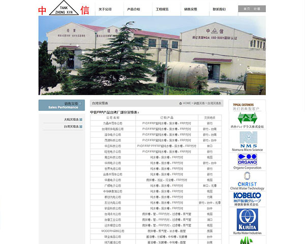 中信公司創(chuàng)辦人早在1974年,開始與其經(jīng)營團隊從事FRP產(chǎn)品制造及技術(shù)研發(fā)工作,于1986年在臺灣率先開發(fā)出FRP桶槽“機械纏繞成型”(Filament Winding Product)制造技術(shù),并經(jīng)過研究與改進,于1989年成立中信玻璃纖維工業(yè)股份有限公司,設(shè)廠于桃園縣楊梅市,廠房面積5000M2,員工60員。臺灣高科技FTF LCD薄膜液晶面板廠及八寸/十二寸晶圓廠所使用之PVDF/FRP、PP/FRP超純水槽、廢水槽FRP內(nèi)襯等,及染料廠生產(chǎn)使用之?dāng)嚢璨?,幾?0%以上皆由本公司提供,為目前臺灣最大FRP桶槽制造及Epoxy、FRP、PVDF、PP、PVC內(nèi)外襯工程專業(yè)廠。
