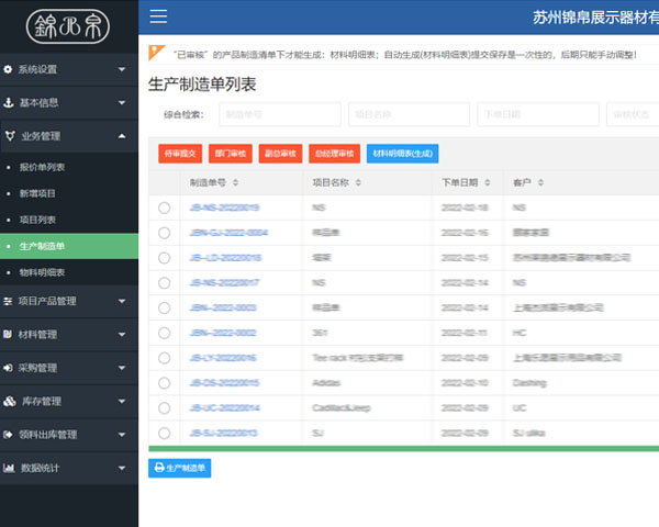 錦帛展示器材MES項(xiàng)目生產(chǎn)管理系統(tǒng)